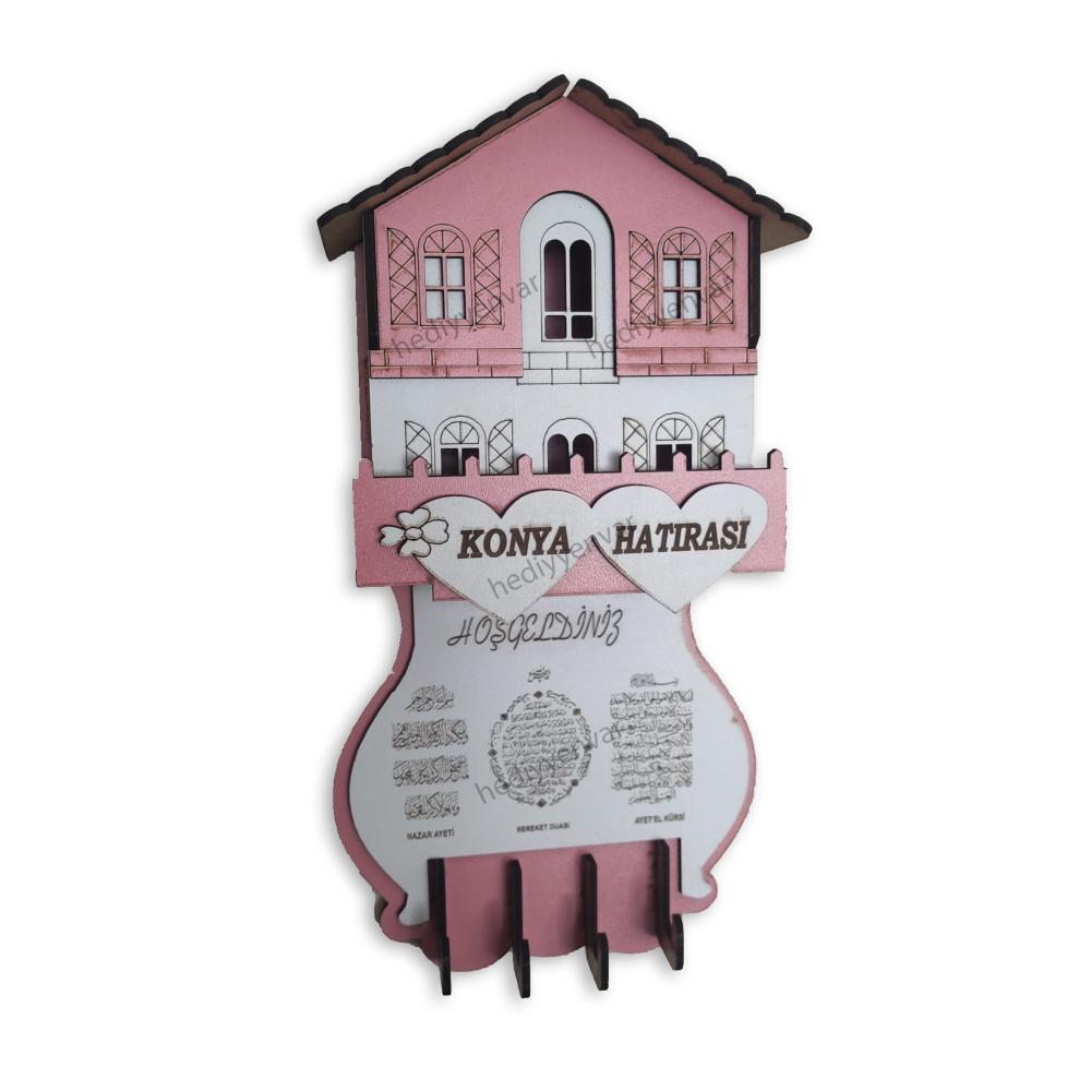 Ahşap Yöresel Hediyelik Pembe Maket Ev Anahtar Askısı 500 Adet